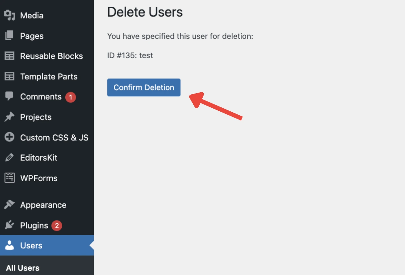 7. Once their task is complete don’t forget to remove access, go back to Users > All Users, find their account, hover over it, and click Delete.