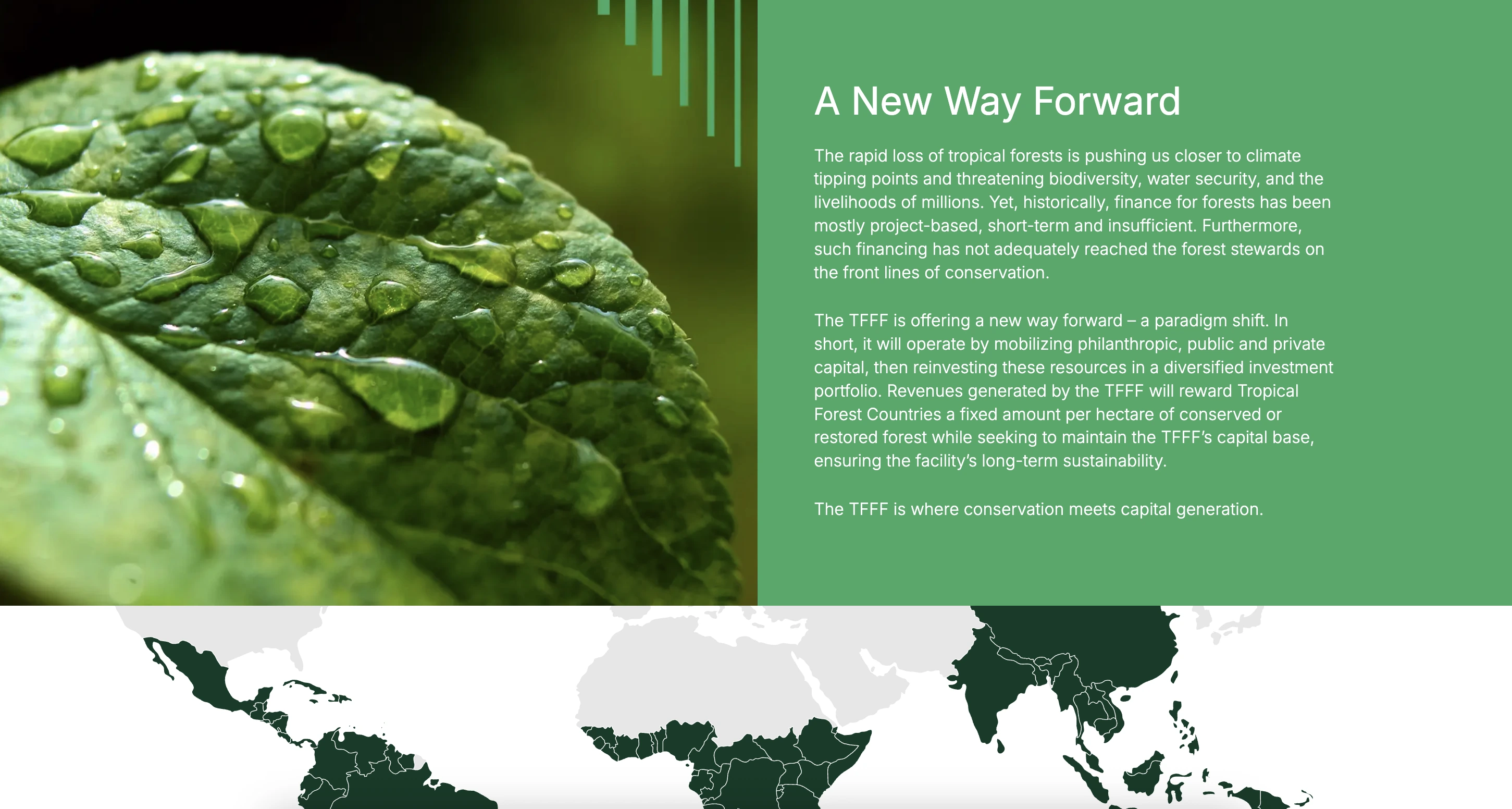 When you’re tasked with creating a digital hub for a $125 billion global climate finance initiative, the stakes are high. When the timeline’s tight and the world is watching—welcome to our work with the Tropical Forest Forever Facility (TFFF).